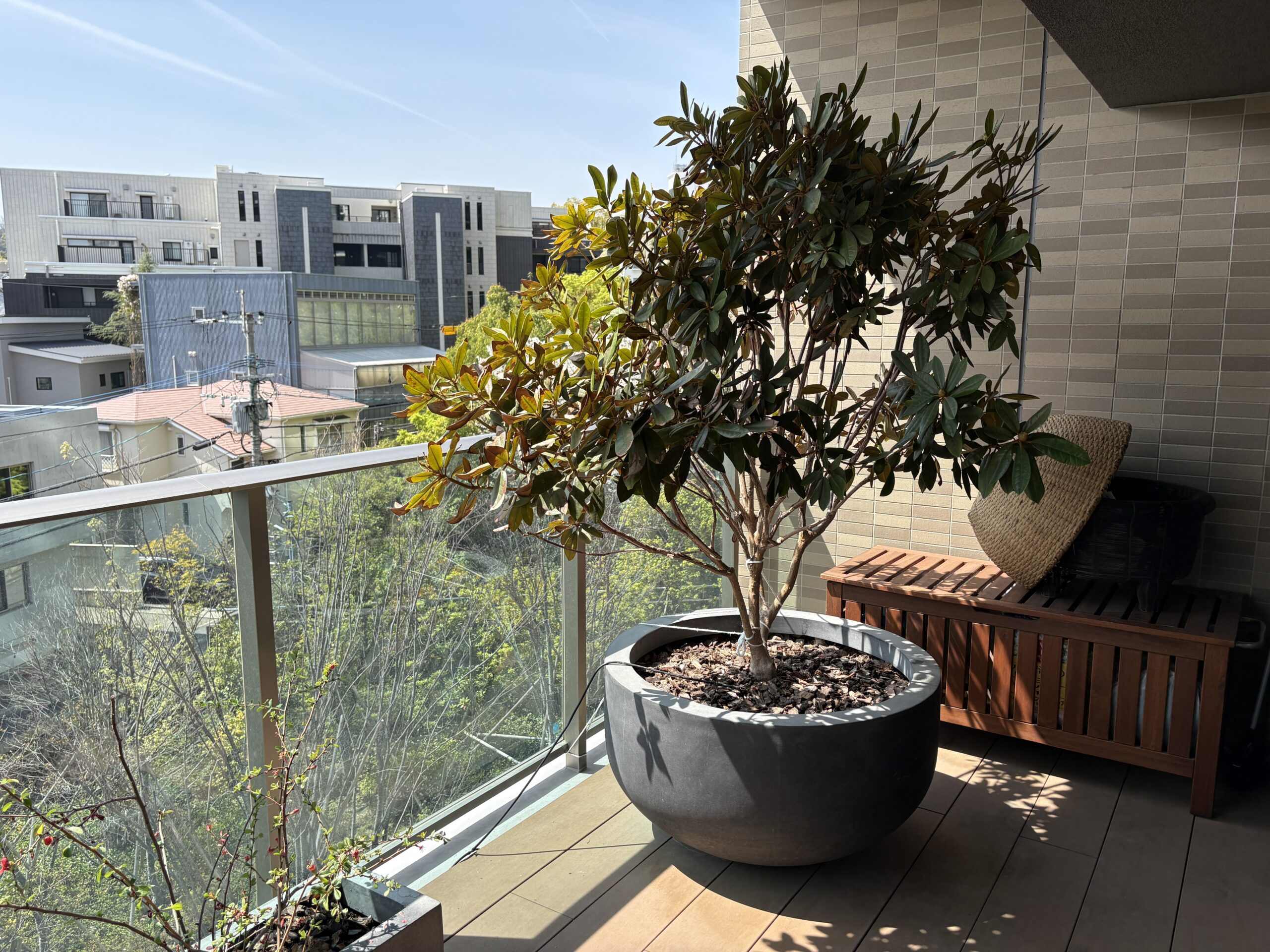 マンションのバルコニーは、室内と屋外を結ぶ境界線です。私たちはその「境界」を、単なる通路ではなく、五感を癒やす聖域へと変貌させます。選び抜かれた樹木と、計算された石組みが、数平方メートルの空間に奥深い風景を描き出します。